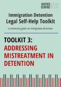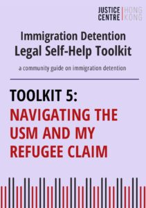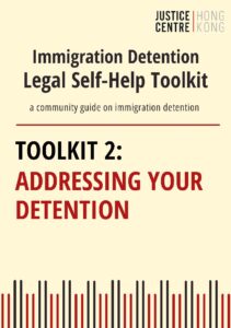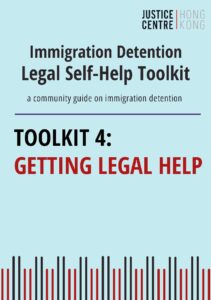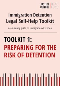 To assist asylum seekers and refugees who may be affected by immigration detention, Justice Centre Hong Kong has developed a series of self-help toolkits. These self-help toolkits are for people who may have an immigration detention problem. If you are an asylum seeker, have no legal immigration status in Hong Kong, or are friends and family of someone in this situation, you may find helpful information and guidance in this toolkit.